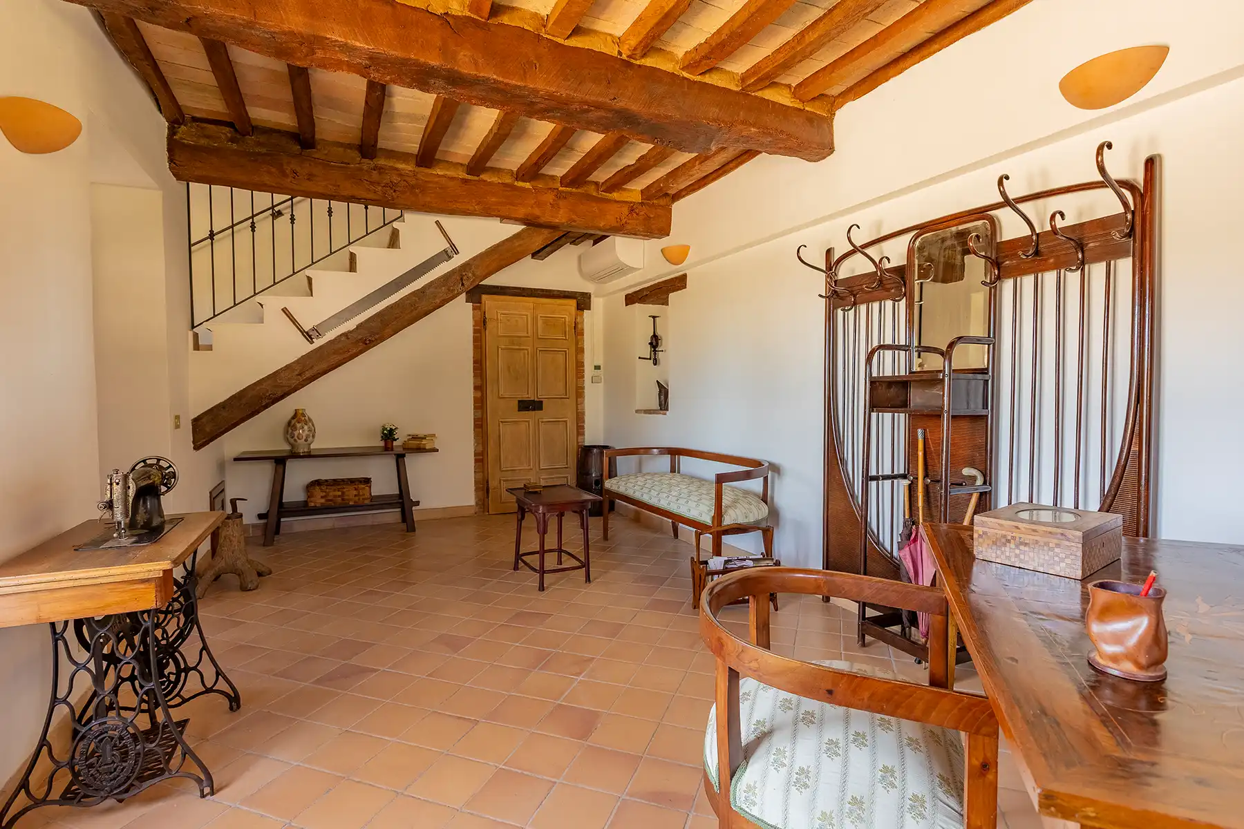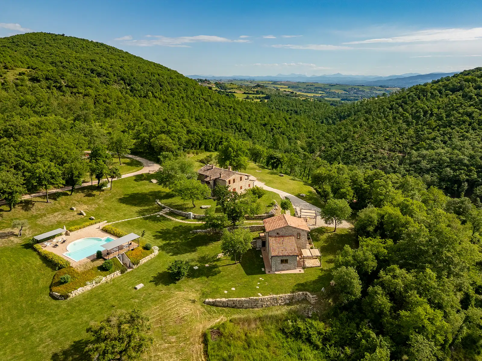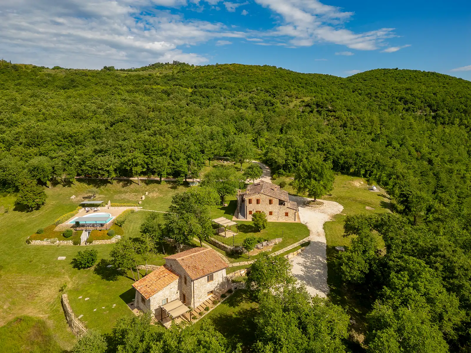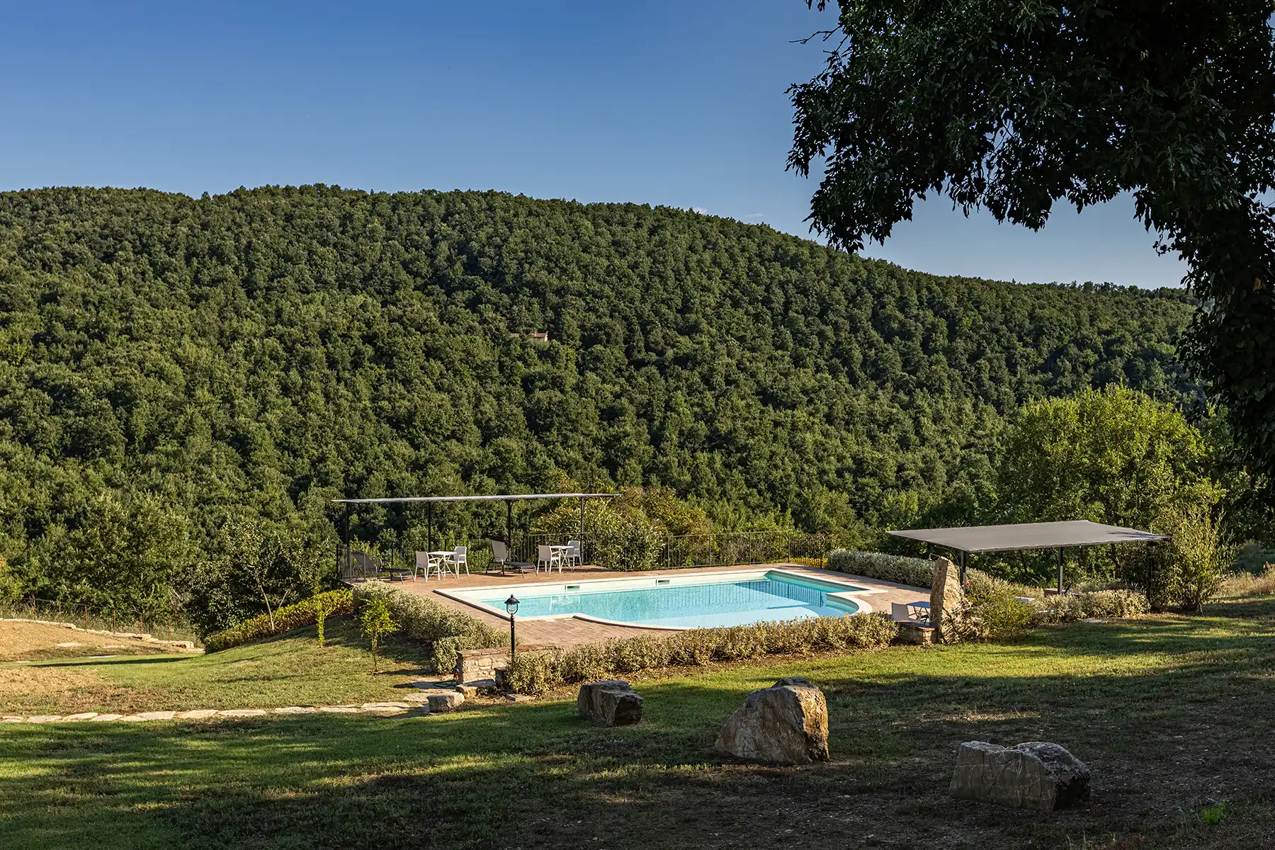 Situata a 350 mt sul livello del mare, ha un’estensione di circa 27 ettari la maggior parte dei quali si trova nel Comune di San Venanzo ed in piccola parte nel vicino Comune di Marsciano. I terreni aziendali sono stati lasciati incolti ed in stato di abbandono per oltre venticinque anni tanto che, al nostro arrivo, tutti gli appezzamenti, sulla carta coltivabili, si erano inselvatichiti. Le operazioni di ripulitura e rimessa in coltura, durate circa 7 anni, ci hanno permesso di recuperare un oliveto secolare e diversi appezzamenti di terreno su cui oggi coltiviamo foraggi per i nostri cavalli, ortaggi, frutta e piante micorrizzate per la produzione del tartufo nero estivo. E’ stato possibile, inoltre, trovare e ripristinare i vecchi muri a secco utilizzati un tempo per addolcire le pendenze e rendere possibile l’utilizzo dei terreni nonché ricavare, dalle pietre tolte dai campi, materiale da costruzione per ristrutturare uno dei due casali e costruire i muri a secco adiacenti l’agriturismo. La maggior parte della superficie aziendale è occupata da bosco ceduo all’interno del quale è possibile fare piacevoli passeggiate sfruttando i sentieri presenti, adatti a tutti. In azienda alleviamo api ligustiche, cavalli bardigiani, asini amiatini, pavoni e altri animali da cortile.